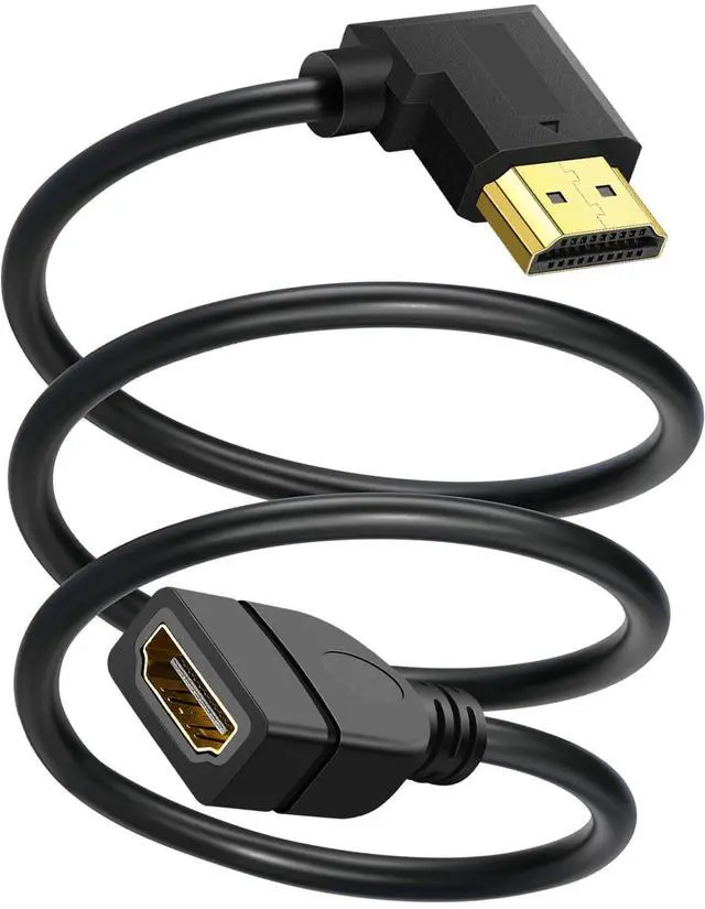 • HDMI Extension Cable Right Angle: HDMI male to female cable is a cable used to extend and optimize the transmission of HDMI signals, with a 90-degree right angle design, suitable for installation close to the wall or the back of the device, convenient for connecting the device in a narrow space, ideal for limited space or flexible wiring scenarios