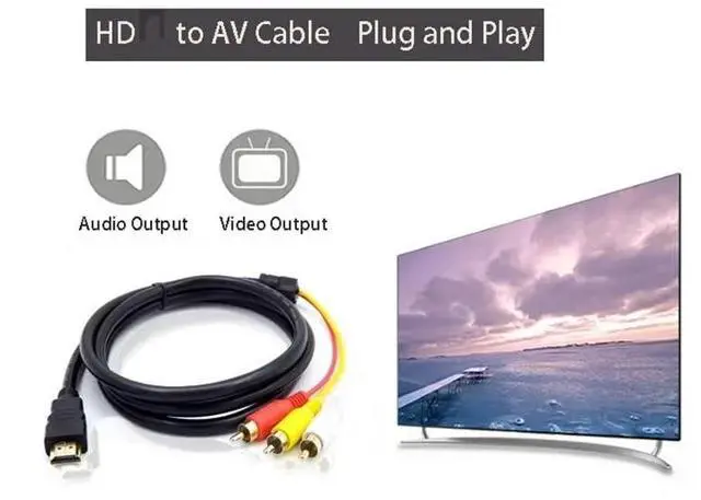 - Product Details [Product Name]: HDMI to 3RCA Color Difference Cable Set Top Box HD Conversion Cable Red, Yellow, White HDMI to AV Cable 3 Color Difference Audio and Video Frequency line [Product Material]: Gold plated plug, pure copper wire core [Product Specification]: 1.4-meter HDMI to 3RCA Male Head Gold Plated [Scope of Application]: To achieve high definition, please use a converter or a decoder on the TV or computer graphics card to support it, Attention buyers!! This type of cable is used for connecting the player to the TV and cannot be directly connected from the computer DVDPS3 Set top box and other devices with Switch HDMI interface devices to TV