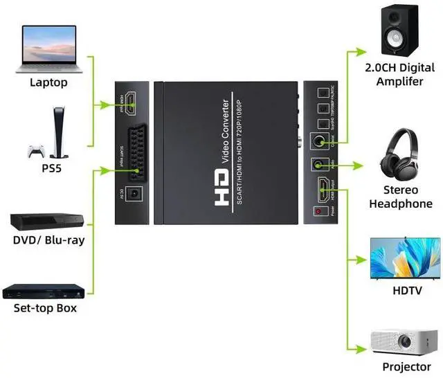 1. Scales up SCART to HDTV resolution up to 720p or 1080p.