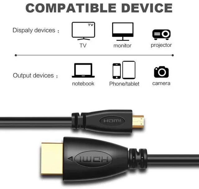 1. Micro HDMI male to HDMI male, high transmission speed.