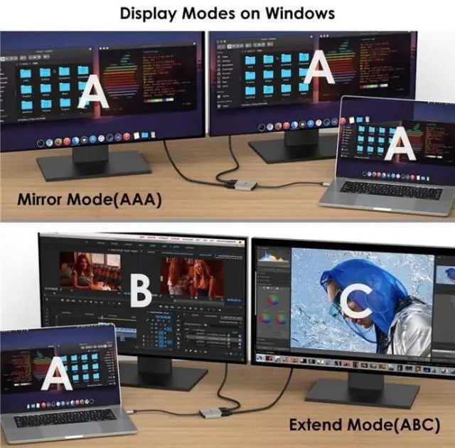 2.4K@60Hz Display Capabilities: Enjoy stunning visuals with a single 4K@60Hz display, or connect dual monitors with resolutions of 2x 4K@30Hz or 4K@60Hz using our USB-C to HD adapter. Seamlessly transmit high-definition video and audio for an ultimate visual experience. Effortlessly mirror or extend displays, whether for a conference presentation or high-definition gaming. Note: For macOS supports only mirroring and single extended mode (with duplicate content on both external displays)