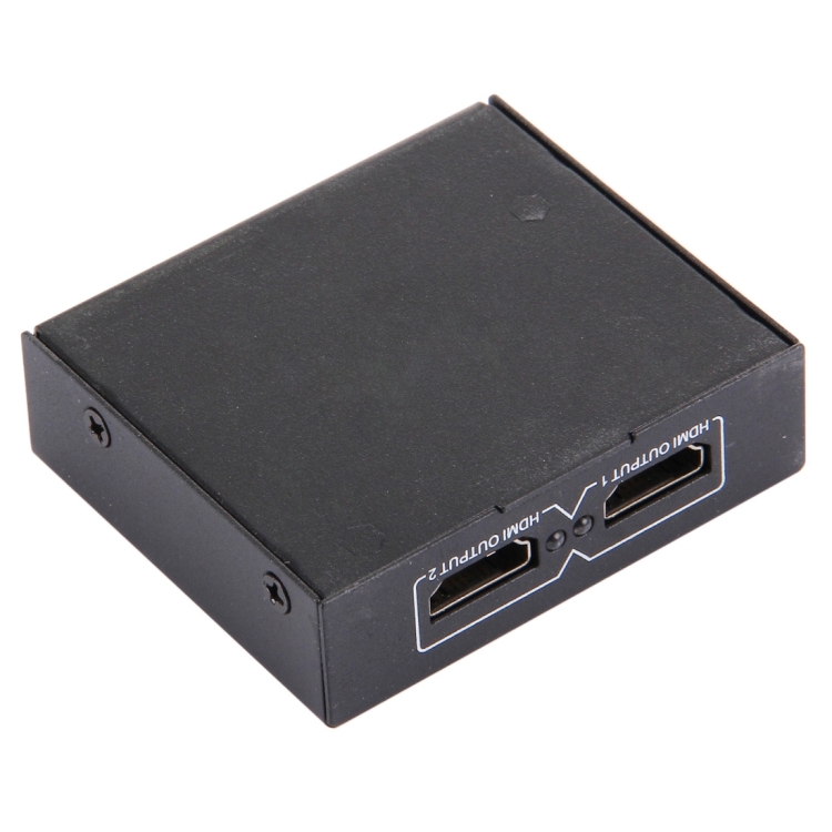 1x2 HDMI Splitter distributes 1 HDMI source to 2 HDMI displays simultaneously. It offers HD video solution for super market, shopping Mall, HDTV / STB/ DVD / Projector / DVR factory, data control center, information distribution, conference room presentation, education and training, corporation showroom, luxurious house, etc..