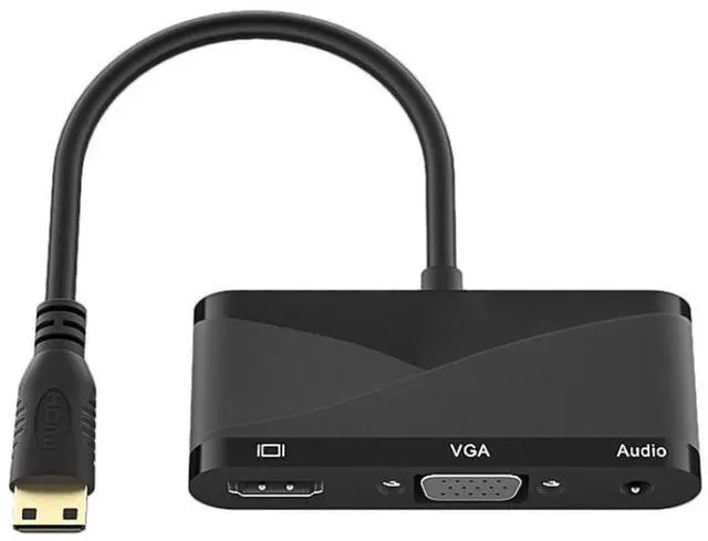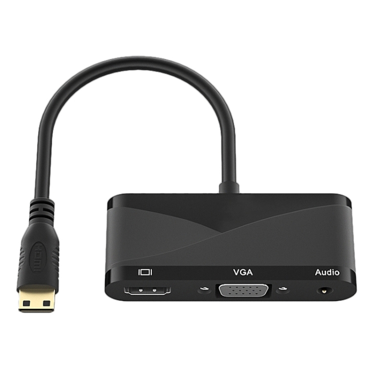 1. Plug and Play 2. Used to connect host content with mini HDMI interface to a monitor with HDMI/VGA/3.5mm audio interface 3. The output image quality is clear 4. Resistant to plugging 5. Small size, not taking up space