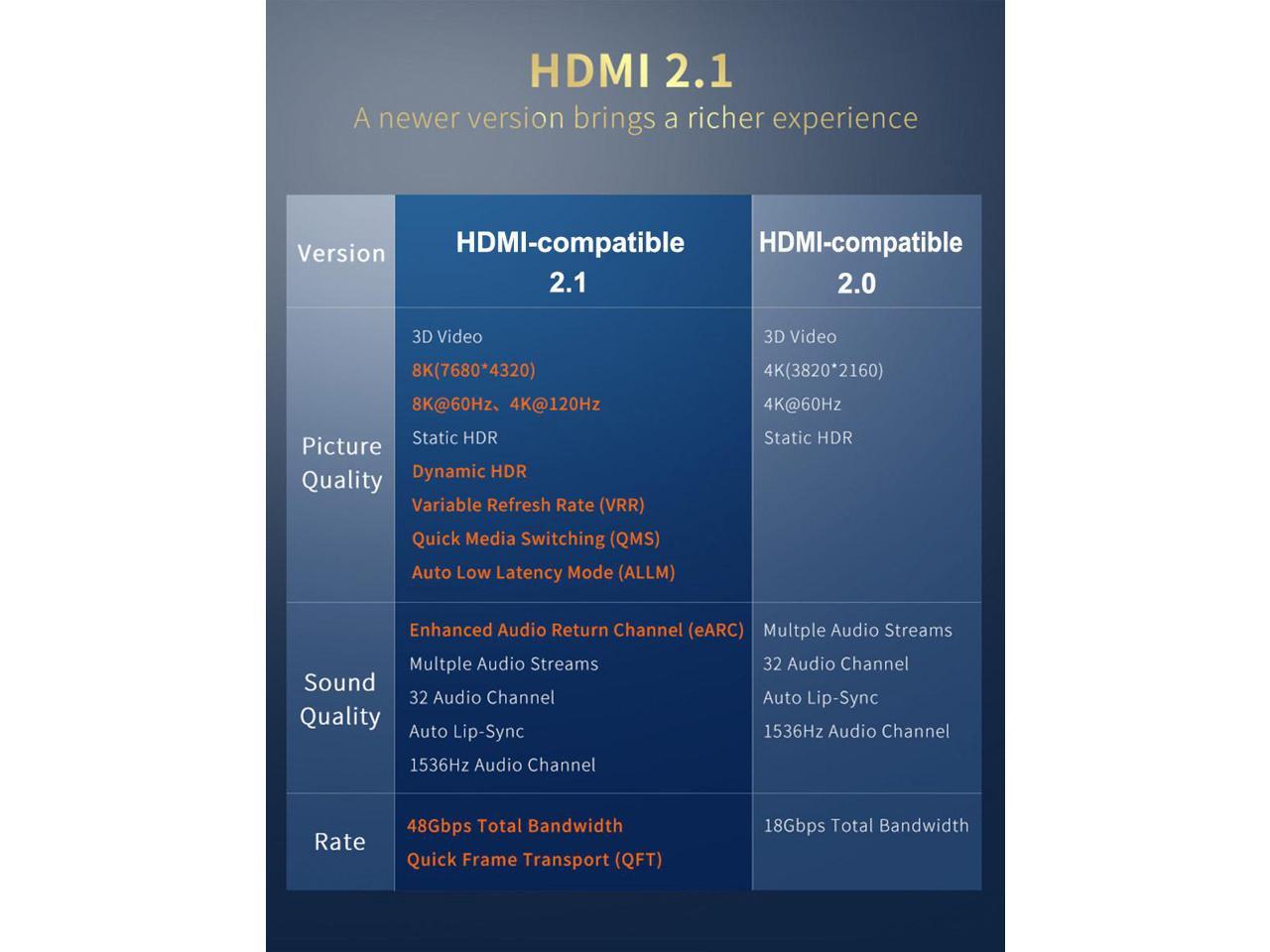 - (1) HDMI-compatible 8K version is the most recent update of the HDMI specification and supports a range of higher video resolutions and refresh rates including 8K@60 Hz and 4K@120Hz, .also compatible with HDMI-compatible /2.0/1.4/1.3/1.2/1.1 version, NOTICE: please make sure your devices support 8K.