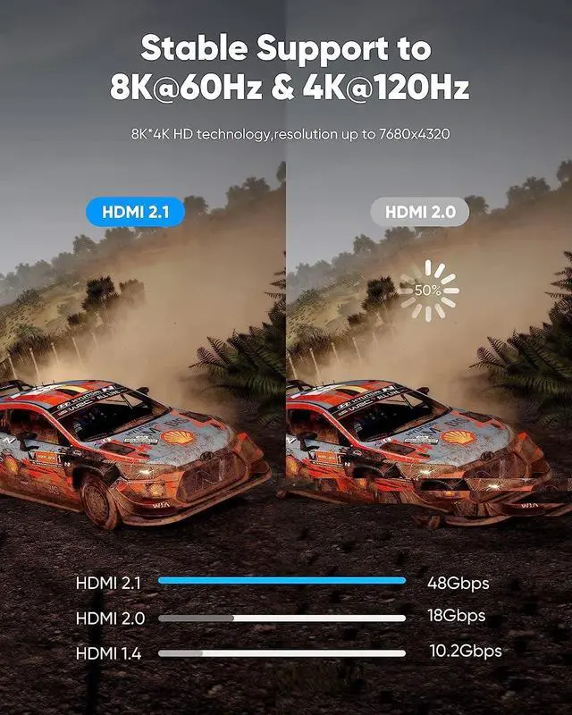 This HDMI Cable is not limited to 4K@60HZ, it can break through 4K and achieve 8K ultra-high image quality. It can also achieve a super smooth picture of 4K@120HZ. Its latest game mode supports variable refresh rate, maximizes the value of the graphics card and CPU, and is more accurate in the processing of rendered images. When the scene is switched, the refresh rate will change accordingly to obtain a smoother and more detailed picture.