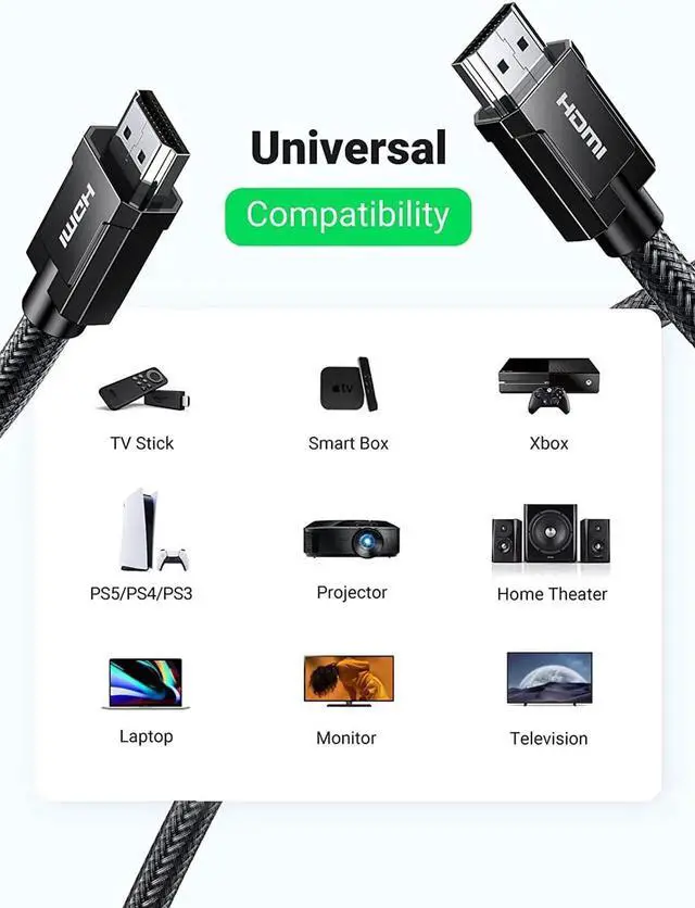 8K 60Hz FUHD: UGREEN hdmi 8k cable supports higher resolution of 8K 60Hz, and compatible with 8K 50Hz, 4K 120Hz, 4K 100Hz, etc.