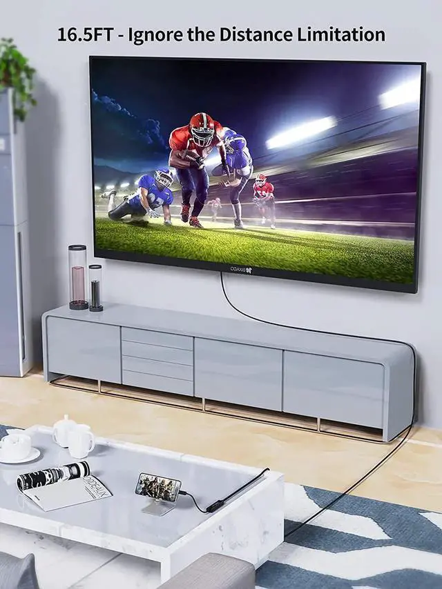 ? LONG USBC HDMI Cable- This USB C to HDMI Cable (Thunderbolt 3 compatible) is designed to connect a USB C laptop or phone to an HDMI-equipped TV, projector, display. It is very easy to streams sports events, movies, gaming, and show photos/albums directly from your USB-C devices to HDTV, projectors, monitors. Never miss the game-winning touchdown or your favorite TV episodes. Longer length give you enough distance to connect with projector for teaching, speech, PPT presentation