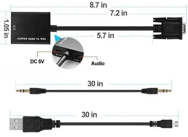 4. Converts VGA video and USB 2CH audio into HD and displays on HDTV / Monitor.