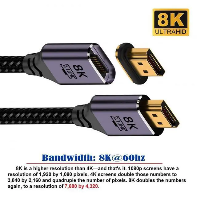Industry standard 48Gbs bandwidth allows for unrestricted video in 8K (UHD) 4K 2K 1440p (QHD) and 1080p (HD).