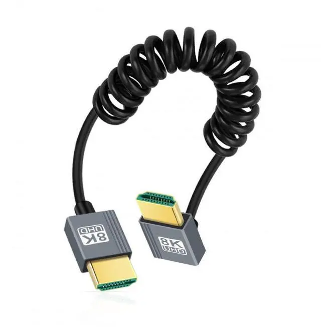 HDMI 2.1 Male to HDMI Male 8K 60hz Stretch Coiled Cable Angled 90 Degree for HDTV Computer Laptop Monitor