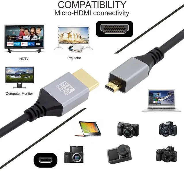 UNIVERSAL COMPATIBILITY: Backwards compatibility with all HDMI versions including HDMI 1.3 / 1.4 / 2.0 / 2.0a / 2.0b / 2.1. Perfect for all Micro HDMI enabled devices such as TV's, Monitors, Computers, Camera.