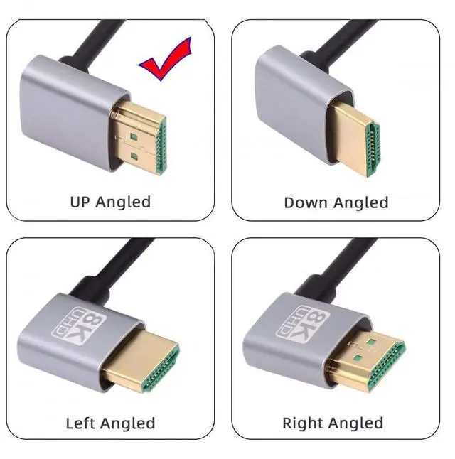 HDMI 2.1 Ultra Thin HDTV Cable 8K 4K Hyper Super Flexible Slim Cord Angled 90 Degree Type-A Male to Male for Computer HDTV