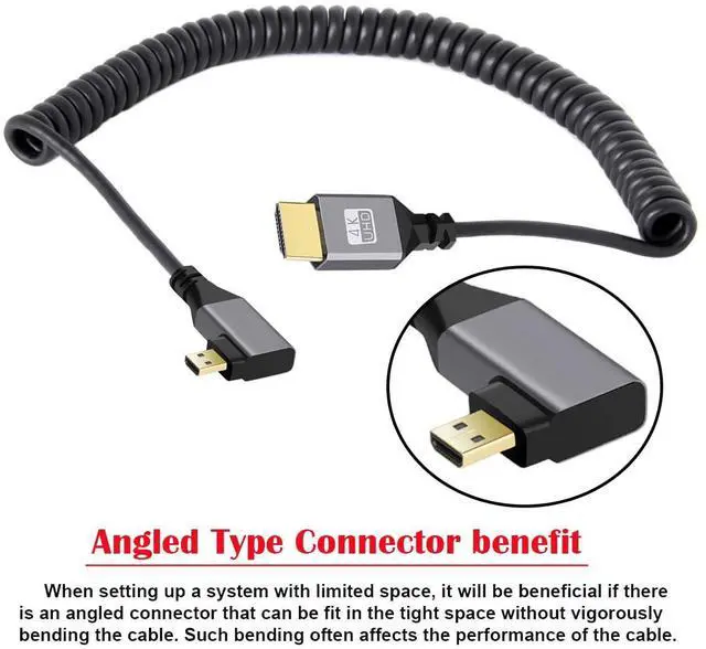 Micro HDMI Male to HDMI Male 4K 60hz Stretch Coiled Cable for HDTV Computer Laptop Monitor