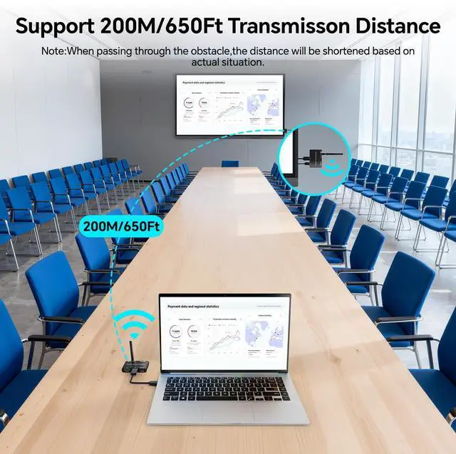 200M/650Ft Wireless HDMI Transmitter and Receiver 1080P@60Hz with KVM,Local Loop-Out,2.5/5GHz,Wireless HDMI Extender for Video Audio to Large Screen TV/Projector/Monitor from Laptop/PC/Camera.
