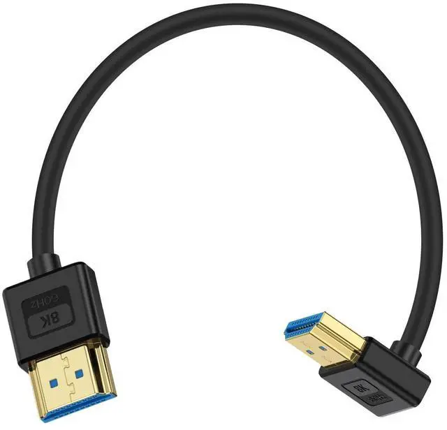 Vszerda Short HDMI Cable, 8K HDMI Cable 1ft, Ultra Thin Down Angle 90 Degree, Soft & Flexible, Slim & Silicone, 48Gbps & 8K@60Hz Compatible for PS5,Monitor,PC and More