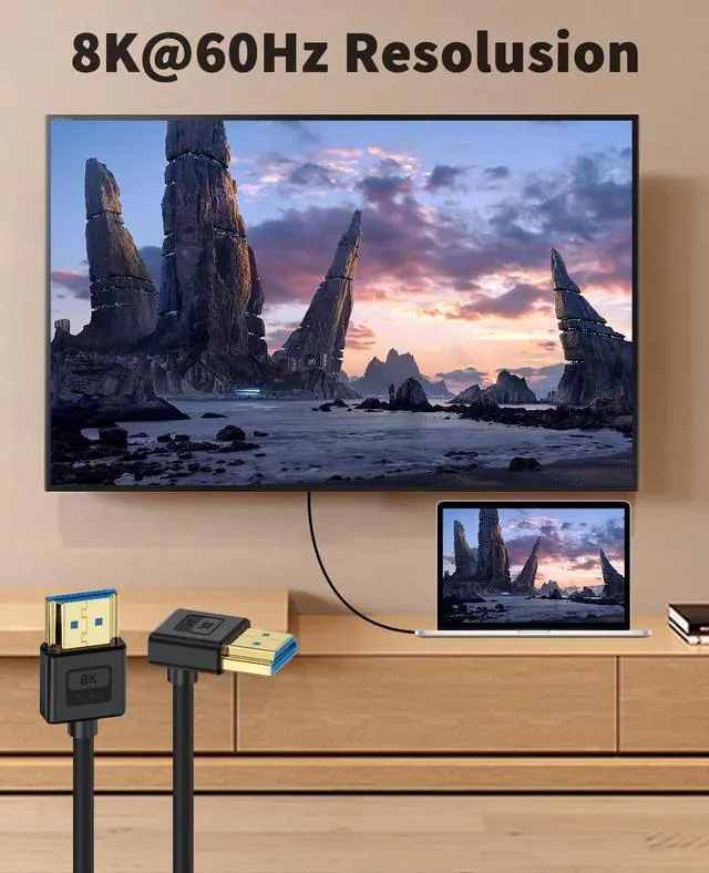 • [Ultra Thin 8K HDMI Cables]: The Short HDMI to HDMI Cable can support resolution and refresh rate up to 8K@60Hz, 4K@120Hz, transmission speed up to 48Gbps bandwidth. It also can backward compatible with HDMI 2.0/1.4/1.3/1.2/1.1 versions.