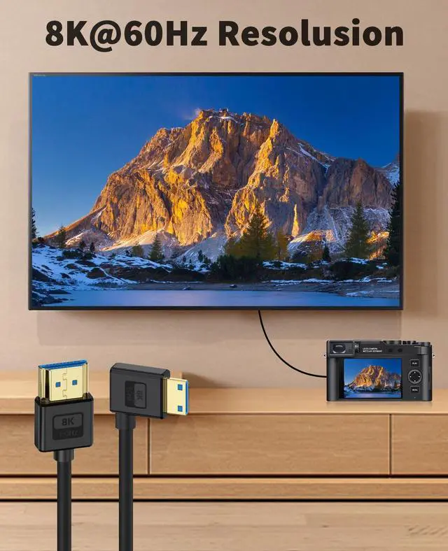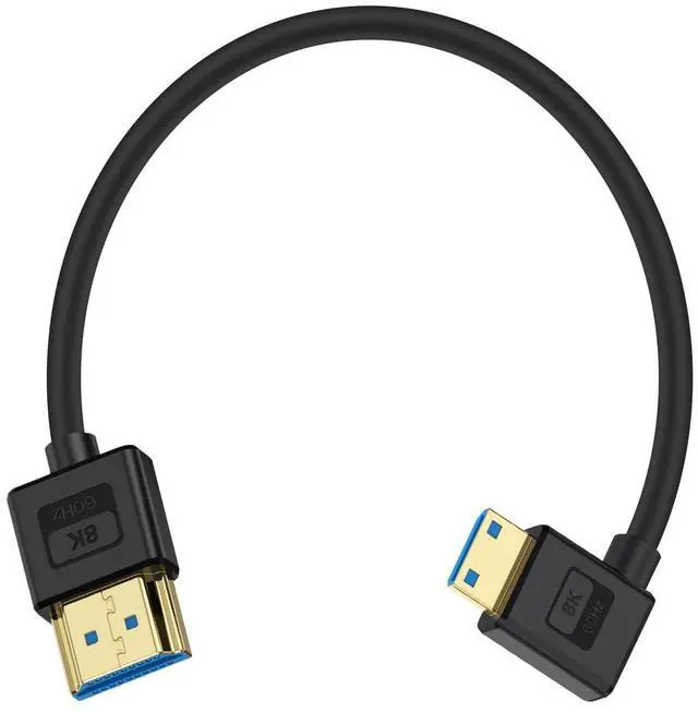 Ultra Thin 8K Mini HDMI to HDMI CableThe Silicone Mini HDMI to HDMI Cable is 0.3M and softer and more comfortable. It is made of the silicone material, and easy bending makes it more convenient to pack up and take photos/videos out. Ideal for Professional Camera Operators for use on camera rigs.