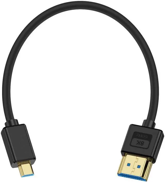 • [Ultra Thin 8K Micro HDMI to HDMI Cable]The Silicone Micro HDMI to HDMI Cable is 0.3M and softer and more comfortable. It is made of the silicone material, and easy bending makes it more convenient to pack up and take photos/videos out. Ideal for Professional Camera Operators for use on camera rigs.