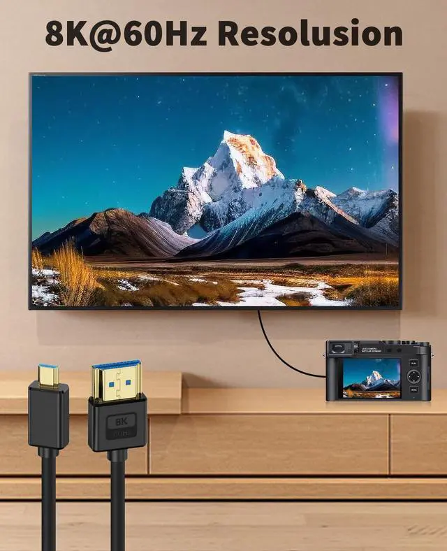 • [Wide Use]Micro HDMI to HDMI 2.1 cable is compatible for portable monitor, graphics card, HDTV, camcorder, laptop, tablet, camera, metal desktops, Raspberry Pi,digital SLR cameras, etc.