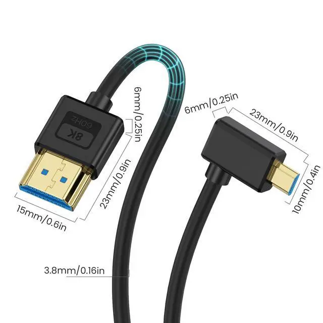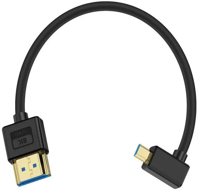 • [Short Micro HDMI to HDMI Cable]The Micro HDMI 2.1 cable can support for the 48Gbps bandwidth, enabling smooth and sharp viewing of video with high-speed action. The 90-degree left angle design ensures a secure connection in tight spaces. This product is not Micro USB to HDMI, it is Micro HDMI (HDMI Type D) to HDMI (HDMI Type A, Standard HDMI, Full HDMI).