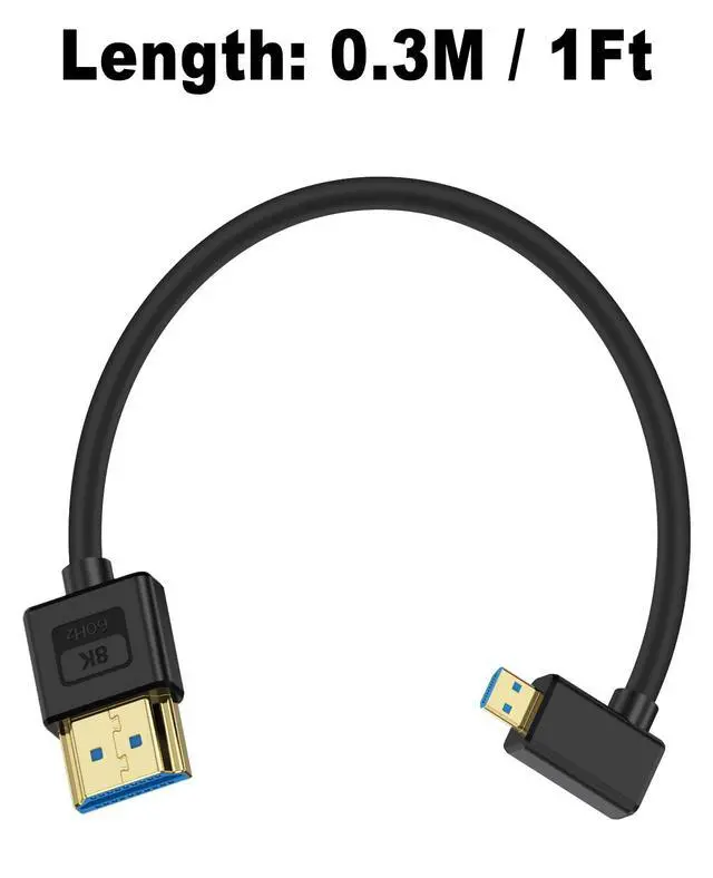 Ultra Thin 8K Micro HDMI to HDMI CableThe Silicone Micro HDMI to HDMI Cable is 0.3M and softer and more comfortable. It is made of the silicone material, and easy bending makes it more convenient to pack up and take photos/videos out. Ideal for Professional Camera Operators for use on camera rigs.