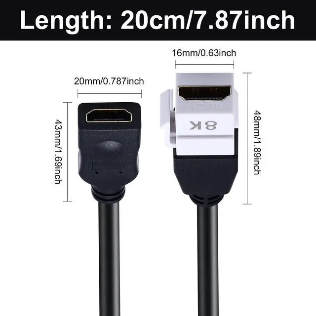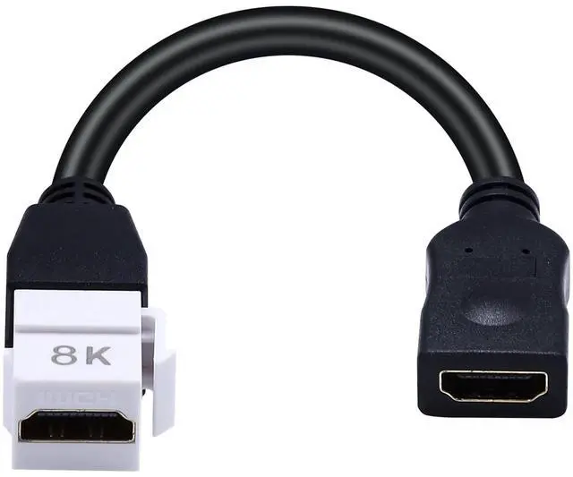 Vszerda 8K HDMI Keystone Jack Pigtail Cable, 48Gbps HDMI 2.1 Keystone Pigtail Cable Female to Female Video Extension Snap-in Connector for White Wall Plate 8K, 4K@60Hz, 8inch