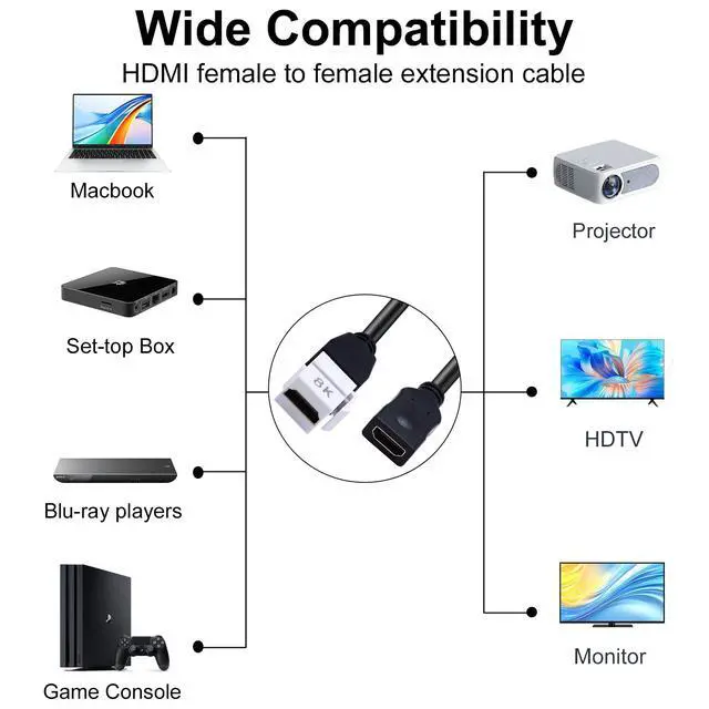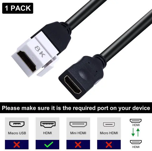• [Wide Use]This HDMI keystone wall plate jack insert cable is compatible with UHD TVs, Dynamic HDR,TV sticks, streaming video players, projectors, computers, or other devices with regular HDMI ports, providing you with a simple solution.
