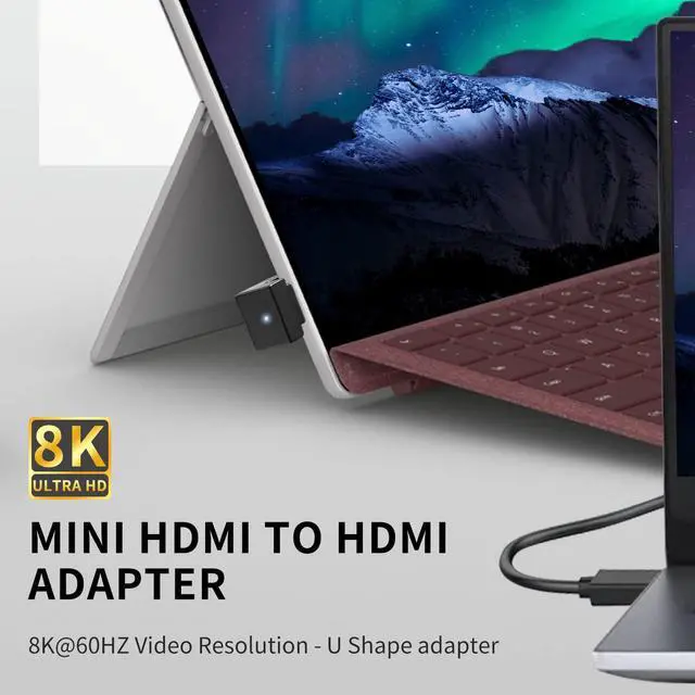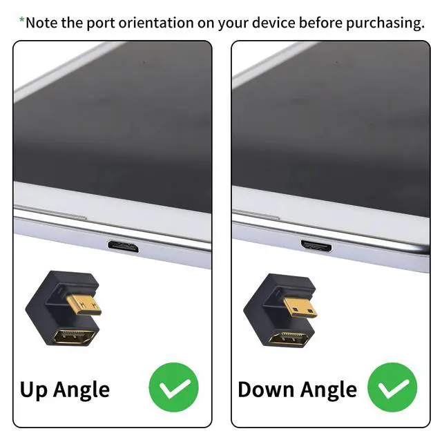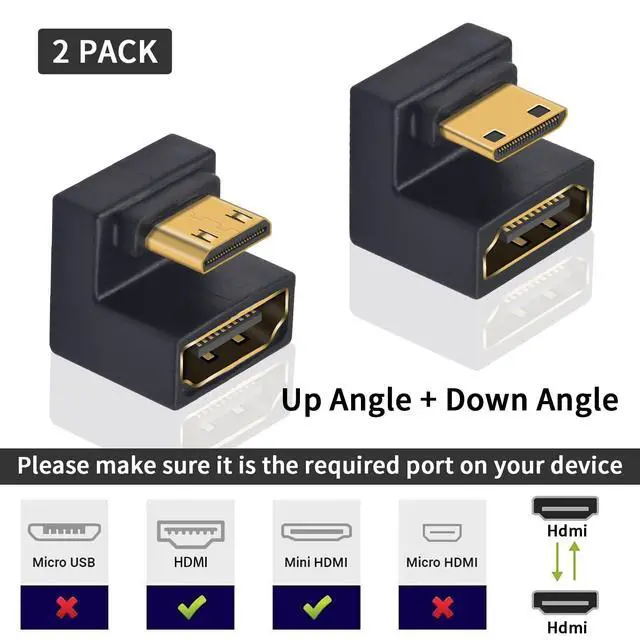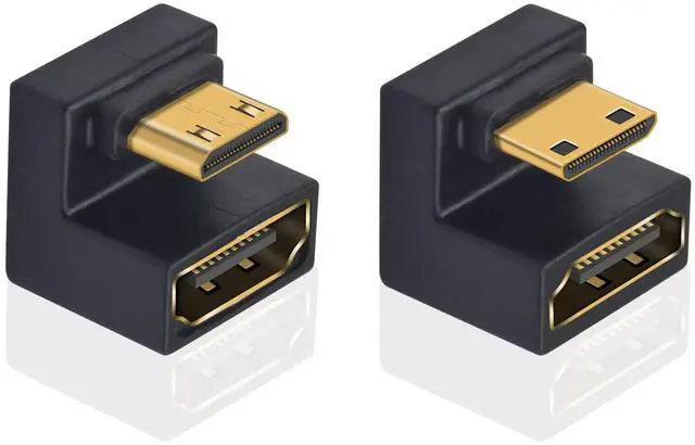 180 Degree Mini HDMI to HDMI Adapter: U Shaped Mini HDMI angle design can avoids bending the HDMI cable, solving the embarrassment of limited wall and equipment space effectively protecting and extending the life of the HDMI cable.
