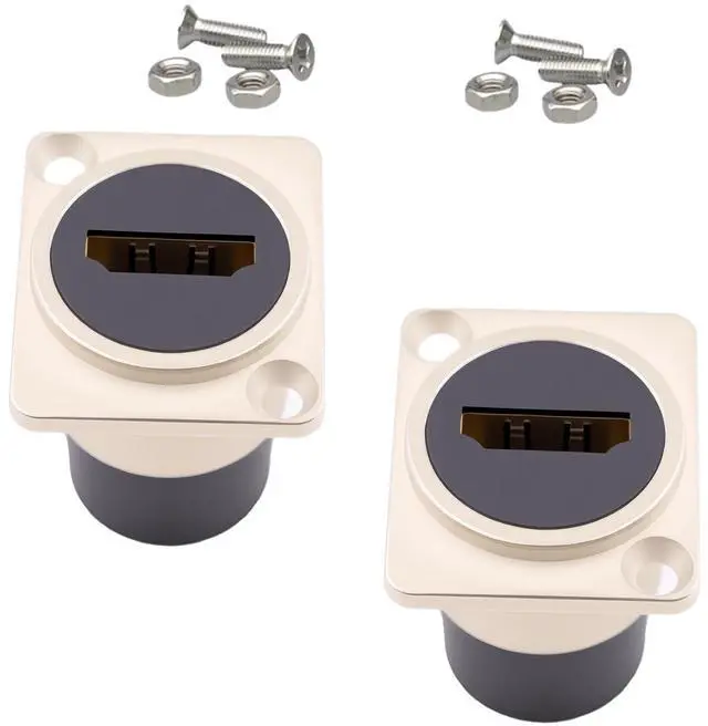 Vszerda HDMI Panel Mount Connector, HDMI Panel Mount Pass Though Adapter Female to Female, 4K@60Hz D-Type Extension Bulkheld Adapter Socket, for TV, Laptop, PC, Monitor, DVD Player, 2-Pack