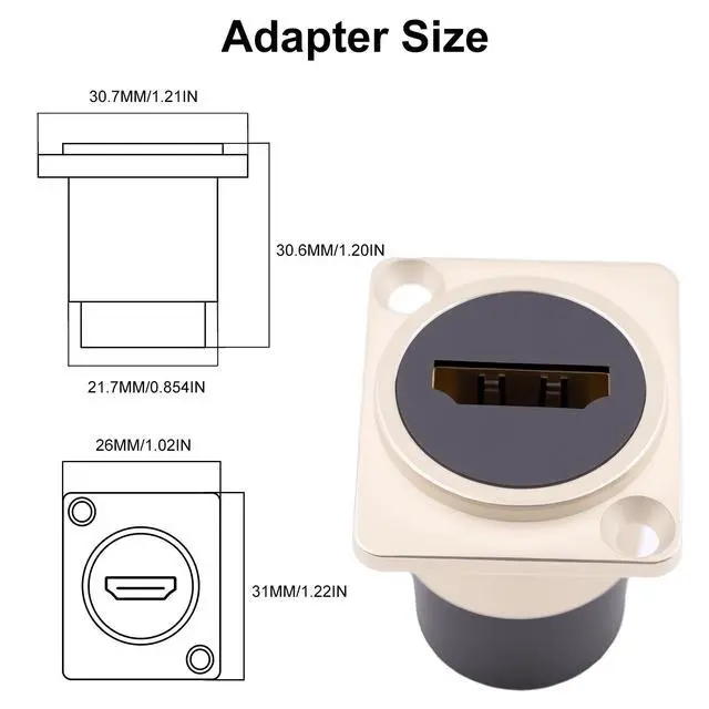 [Easy to Installation]Standard HDMI 2.0 D-Type mounting hole, you can choose to fix the HDMI adapter or not, no soldering, no installation tools, which provides great convenience in engineering use.
