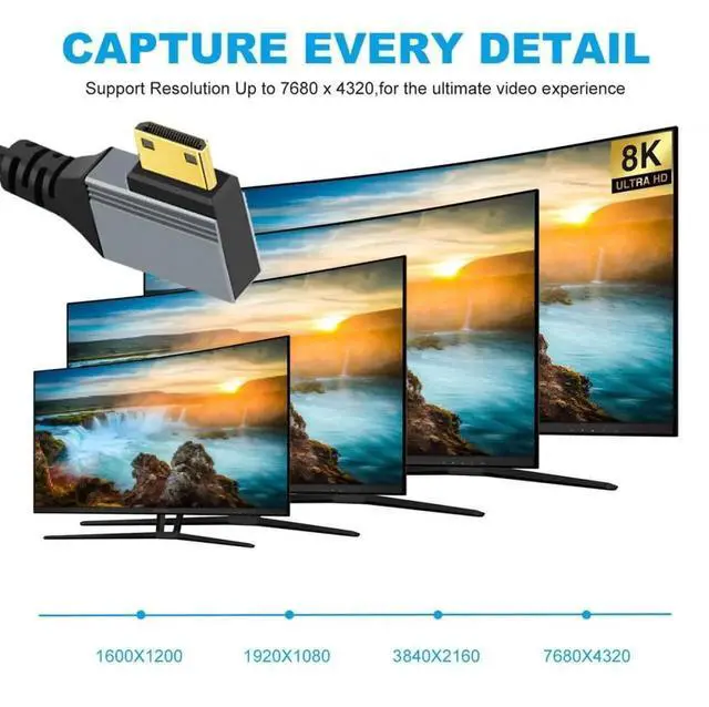 Angled Connector Design: 90 Degree Left Angled Mini HDMI, The angled type Allowing you to connect it to a female port, even if space around the port is limited.