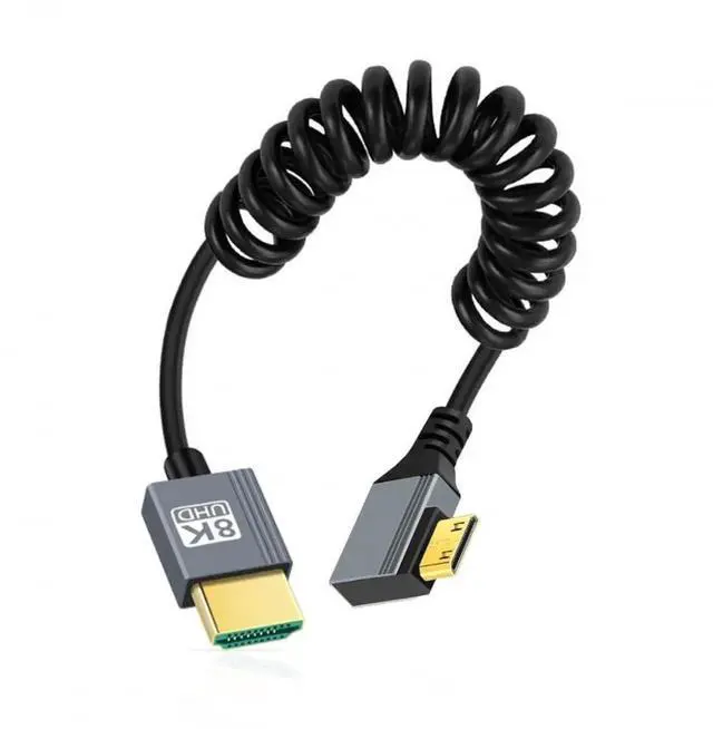 90 Degree Right Angled Mini HDMI 2.1 Male to HDMI Male 8K 60hz Stretch Coiled Cable 100cm for HDTV Computer Laptop Monitor