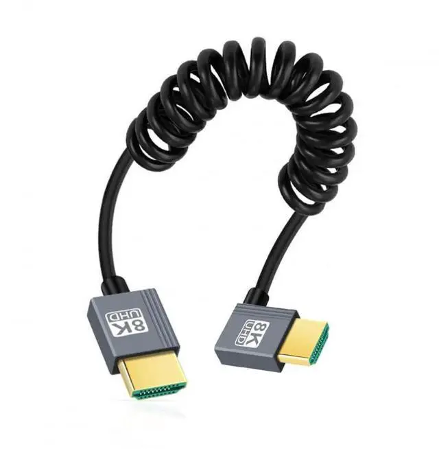 HDMI 2.1 Male to HDMI Male 8K 60hz Stretch Coiled Cable Angled 90 Degree for HDTV Computer Laptop Monitor