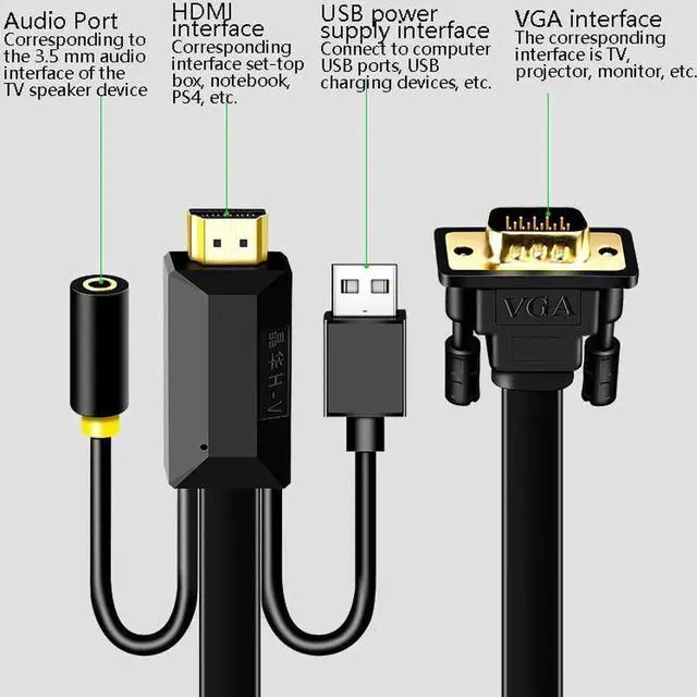 7. Features: flat cable body, flexible wiring at the edge of the desktop, corners or gaps, good flexibility, wear-resistant and durable, the interface is gold-plated, plug-in resistance, anti-oxidation, 3.5 mm independent audio interface, audio and video synchronization enjoyment, USB The power supply interface is connected to the computer USB port or USB charging device, the transmission is more stable, the powerful chip, the performance is stable