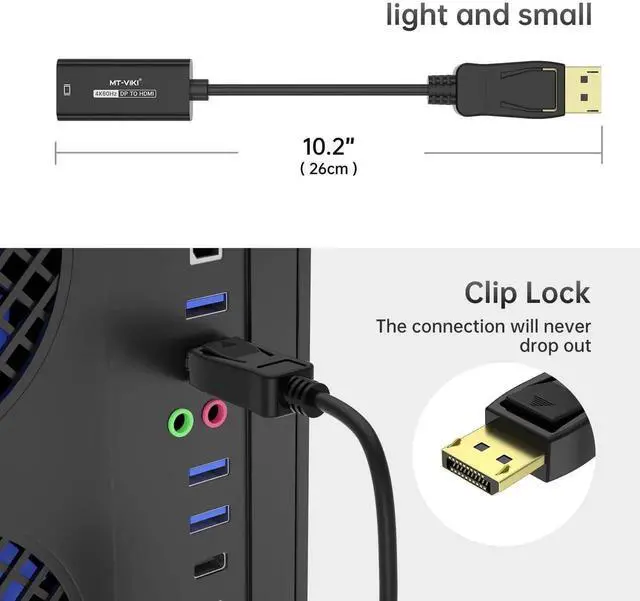 MT-CPH03The MT-VIKI DisplayPort to HDMI adapter connects a computer, desktop, laptop, or other devices with DisplayPort port to a monitor, projector, HDTV, or other devices with HDMI port; Tuck this lightweight gadget into your bag or pocket to do a business presentation with your laptop and projector, or extend your desktop screen to a monitor or TV.