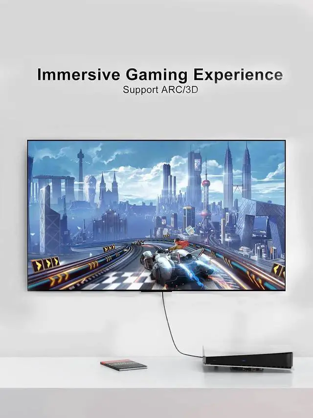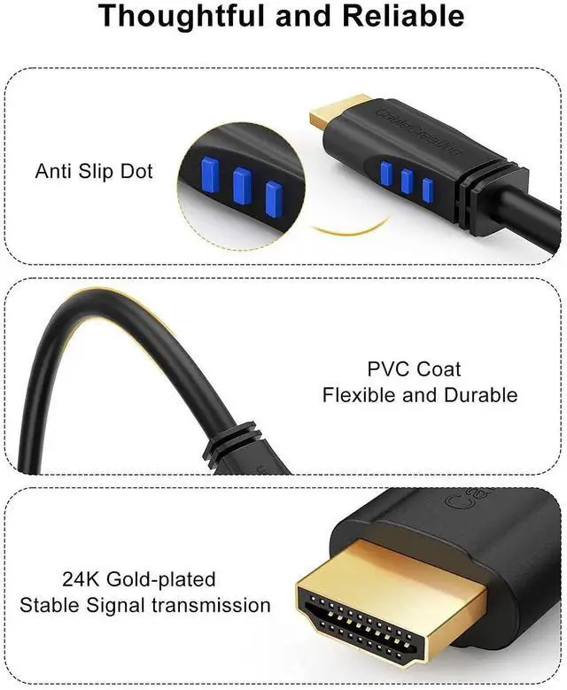 4K HDMI Cable is a high-quality HDMI cable designed to deliver ultra-high-definition 4K video and 3D video with excellent clarity and fidelity. With a right angle 270 degree vertical right connector design, this HDMI cable provides a space-saving solution and ensures a secure and stable connection in tight spaces. The high-quality copper wire and triple shielding ensure stable signal transmission and minimize signal loss, delivering highly-speed data transfer up to 18Gbps. This HDMI cable features gold-plated connectors and a durable nylon braided jacket, which ensures long-lasting durability and re