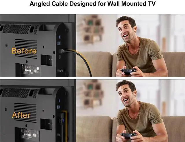 4K HDMI Cable is a high-quality HDMI cable designed to deliver ultra-high-definition 4K video and 3D video with excellent clarity and fidelity. With a right angle 270 degree vertical right connector design, this HDMI cable provides a space-saving solution and ensures a secure and stable connection in tight spaces. The high-quality copper wire and triple shielding ensure stable signal transmission and minimize signal loss, delivering highly-speed data transfer up to 18Gbps. This HDMI cable features gold-plated connectors and a durable nylon braided jacket, which ensures long-lasting durability and reliable performance.