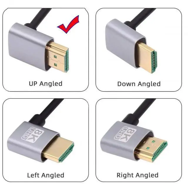 HDMI 2.1 Ultra Thin HDTV Cable 8K 4K Hyper Super Flexible Slim Cord Angled 90 Degree Type-A Male to Male for Computer HDTV
