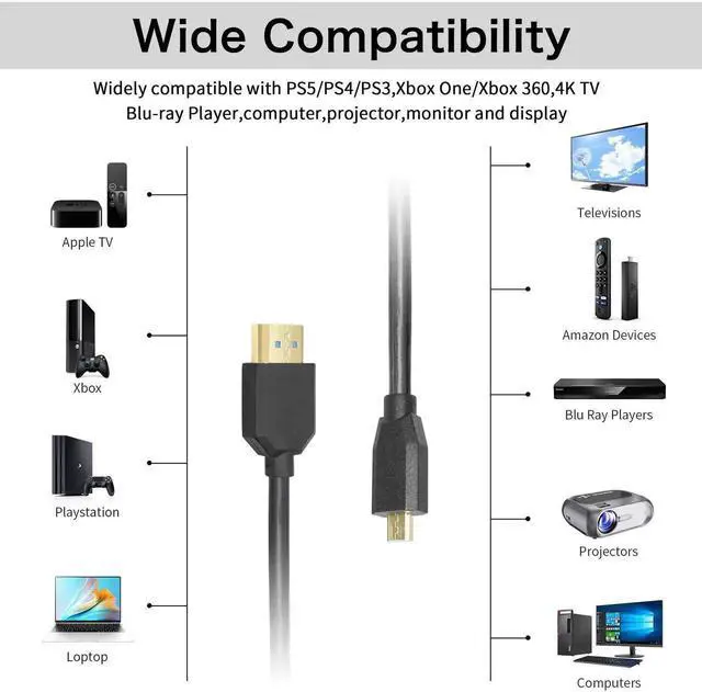 [UHD HDMI 2.1 Cable]Supports output 8K@60HZ(Backward compatible with 4K@120HZ,2K@240HZ and more),UP to 7680*4320, 48Gbps extraordinary refresh rate ensures no drop frame, Provides an ultra-immersive viewing & gaming experience.