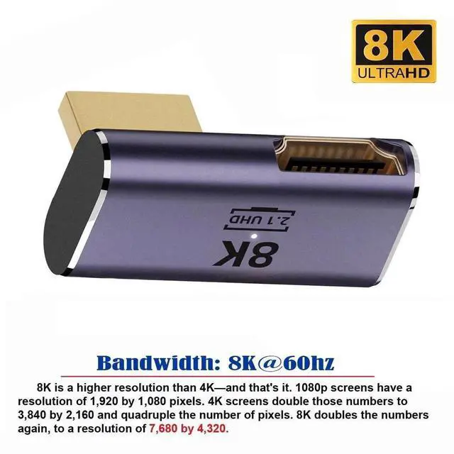 • 8K Cable HDMI Male to HDMI 2.1 Female Vertical 90 Degree Right Up Angled Low Profile UHD Extension Adapter Support 8K 60hz HDTV