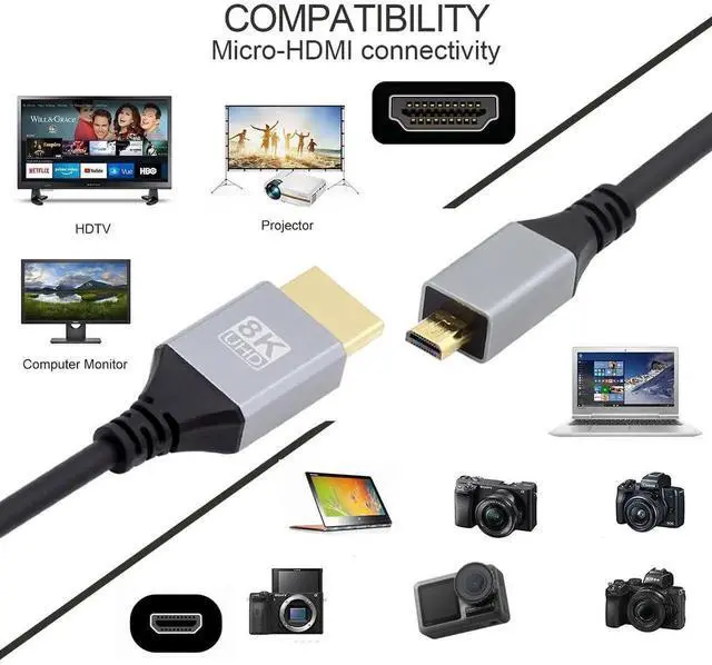 UNIVERSAL COMPATIBILITY: Backwards compatibility with all HDMI versions including HDMI 1.3 / 1.4 / 2.0 / 2.0a / 2.0b / 2.1. Perfect for all Micro HDMI enabled devices such as TV's, Monitors, Computers, Camera.