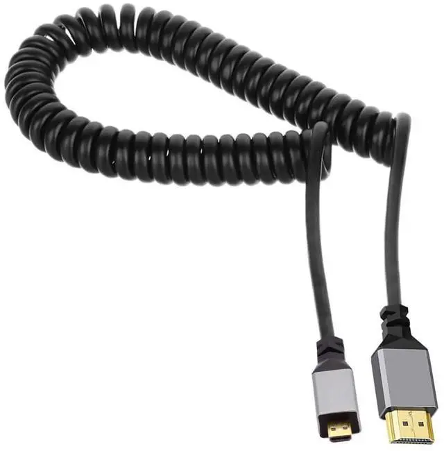 Micro HDMI Male to HDMI Male 4K 60hz Stretch Coiled Cable for HDTV Computer Laptop Monitor