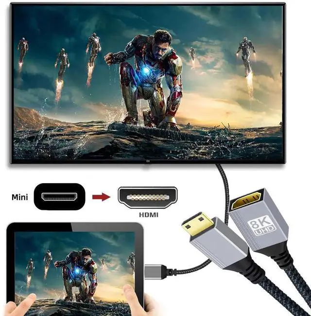 8K Type-C Mini HDMI 2.1 Male to HDMI Female Extension HDTV Cable for DV Camera Laptop Monitor