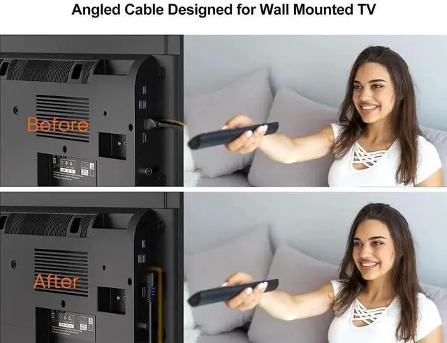 4K HDMI Cable 6ft is the perfect cable for high-quality audio and video transmission. With its left angle and 270 degree vertical right design, it is ideal for tight spaces and wall-mounted TVs, avoiding bending and damage to the cable. This HDMI cable supports 4K Ultra HD and 3D video, providing clear and vibrant images. It is compatible with various devices, such as TVs, monitors, projectors, gaming consoles, and more. With highly-speed transmission, it transmits audio and video signals quickly, ensuring a smooth and seamless experience. Made with high-quality materials, this HDMI cable is durable and reliable, providing long-lasting performance.