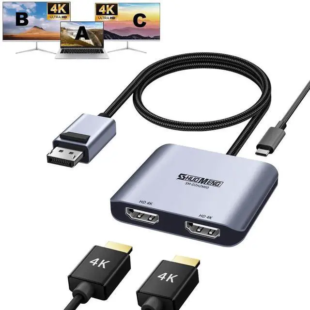 [Plug and play]No need drivers. [Step 1]: Connect the adapter to the monitor via HDMI cable that supports 4K@60Hz. [Step 2]: Connect USB cable to power the splitter. [Step 3]: Plug the DP male connector into the signal source port. (Note: Computers with integrated GPUs can only support mirror mode or can only extend one display. Do not use with any KVM/Hub/Docking)