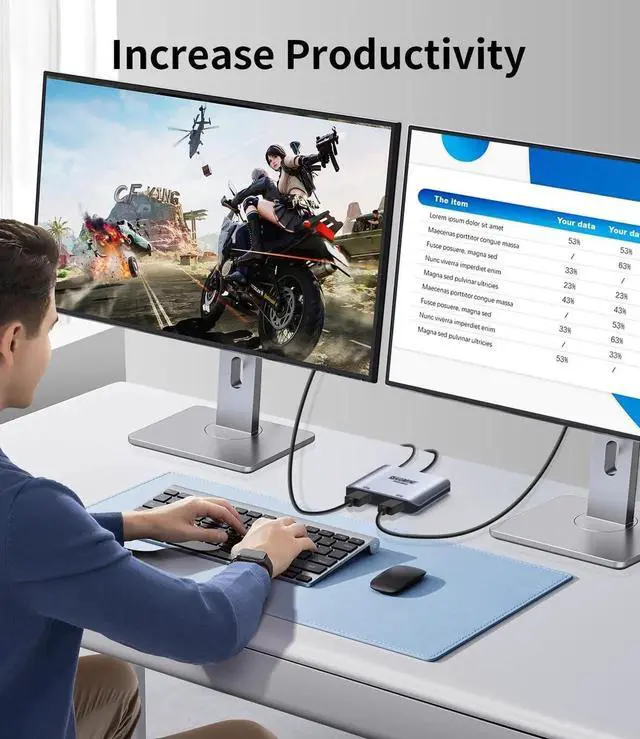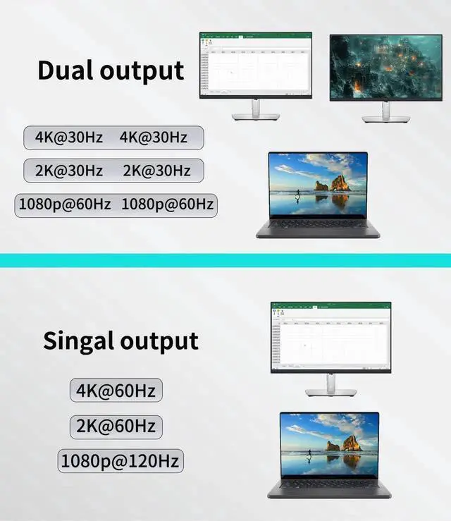 [High Resolution]Support UHD 4K@60Hz(RGB and YCbCr 4:4:4). You can add a dual display port monitor to your PC, laptop or desktop,NVIDIA, AMD Graphics Card.The resolution of single HDMI screen up to 4K@60Hz,and the resolution of dual HDMI screen up to 4K@30Hz, to reach this resolution, require both of your monitors support the same resolution.