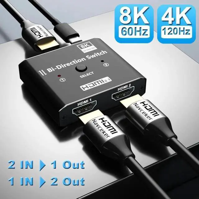 ![Alt view image 2 of 7 - HDMI Switch 2 in 1 Out 8K@60Hz, [Aluminum Case, HDCP 2.3] Bidirectional 2x1/1X2 Switcher Splitter UHD Compatible for PS5/4, Xbox, Roku, FireStick](https://c1.neweggimages.com/productimage/nb640/B4D1D260207045TAM7A.jpg)