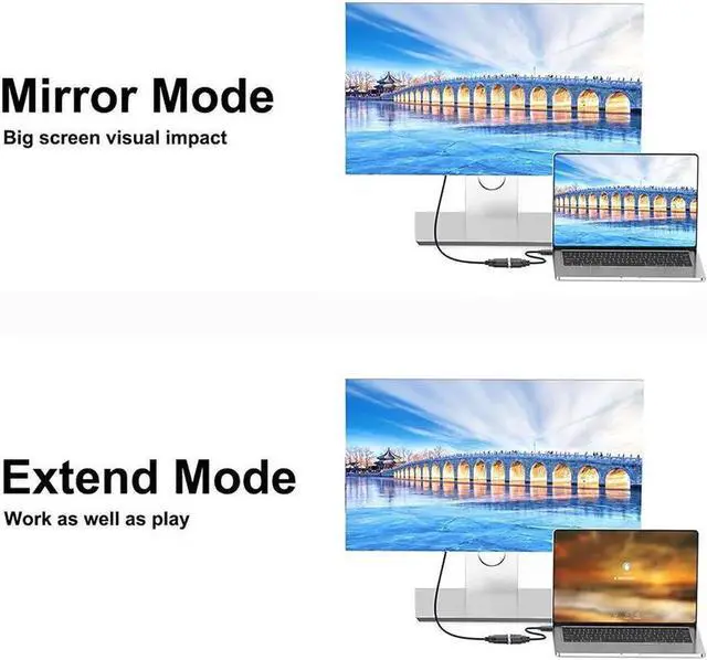 Support Multitasking, this cable supports both mirror and extend mode, perfect choice for multi-tasking and presentation.