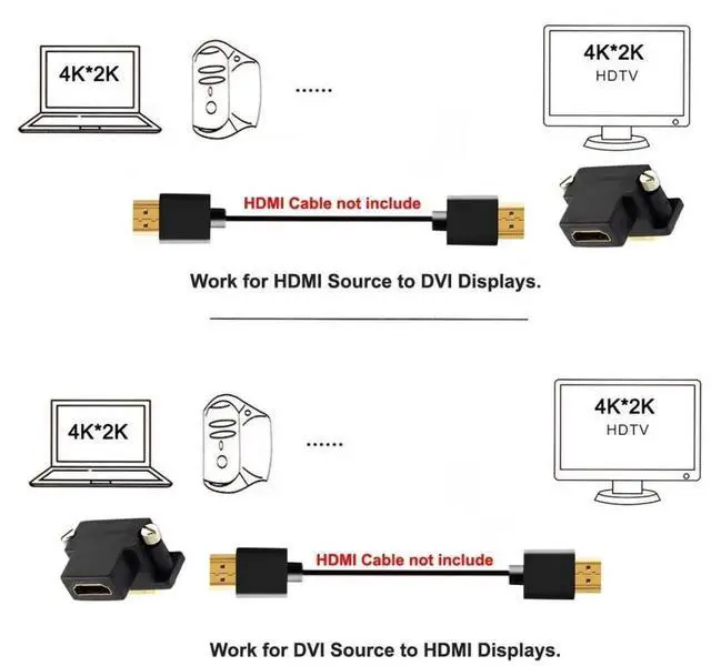 1) The HDMI-DVI bi-directional adapter can connect a computer with a DVI port to a monitor, HDTV, or projector with an HDMI port, or connect a computer with an HDMI port to a monitor with a DVI port.