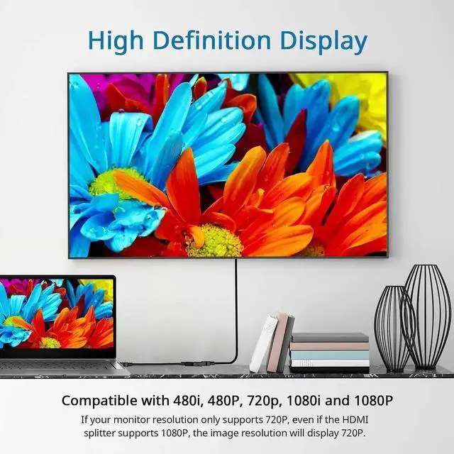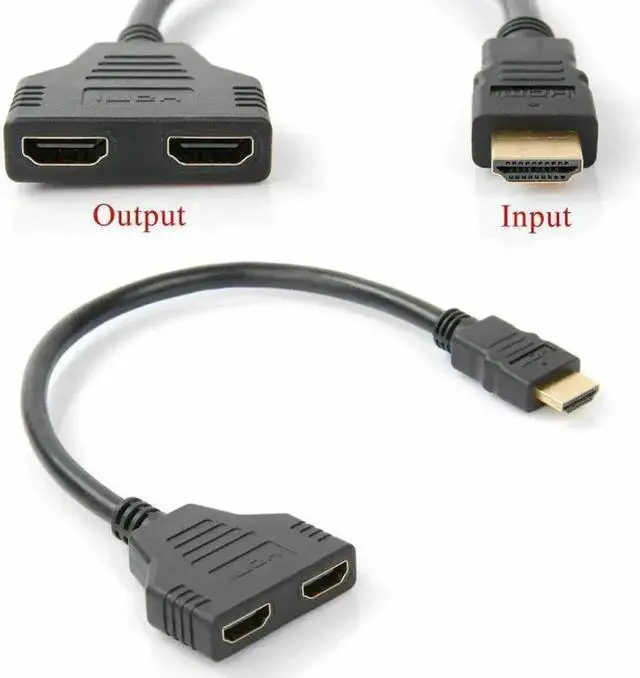 This HDMI Splitter Adapter Cable also can transmits the video & audio signal from one HDMI compatible device (such as, a Blu-ray player, etc.) to one of two visual output devices (such as, HDTV, Monitor, etc.) that are plugged into it.